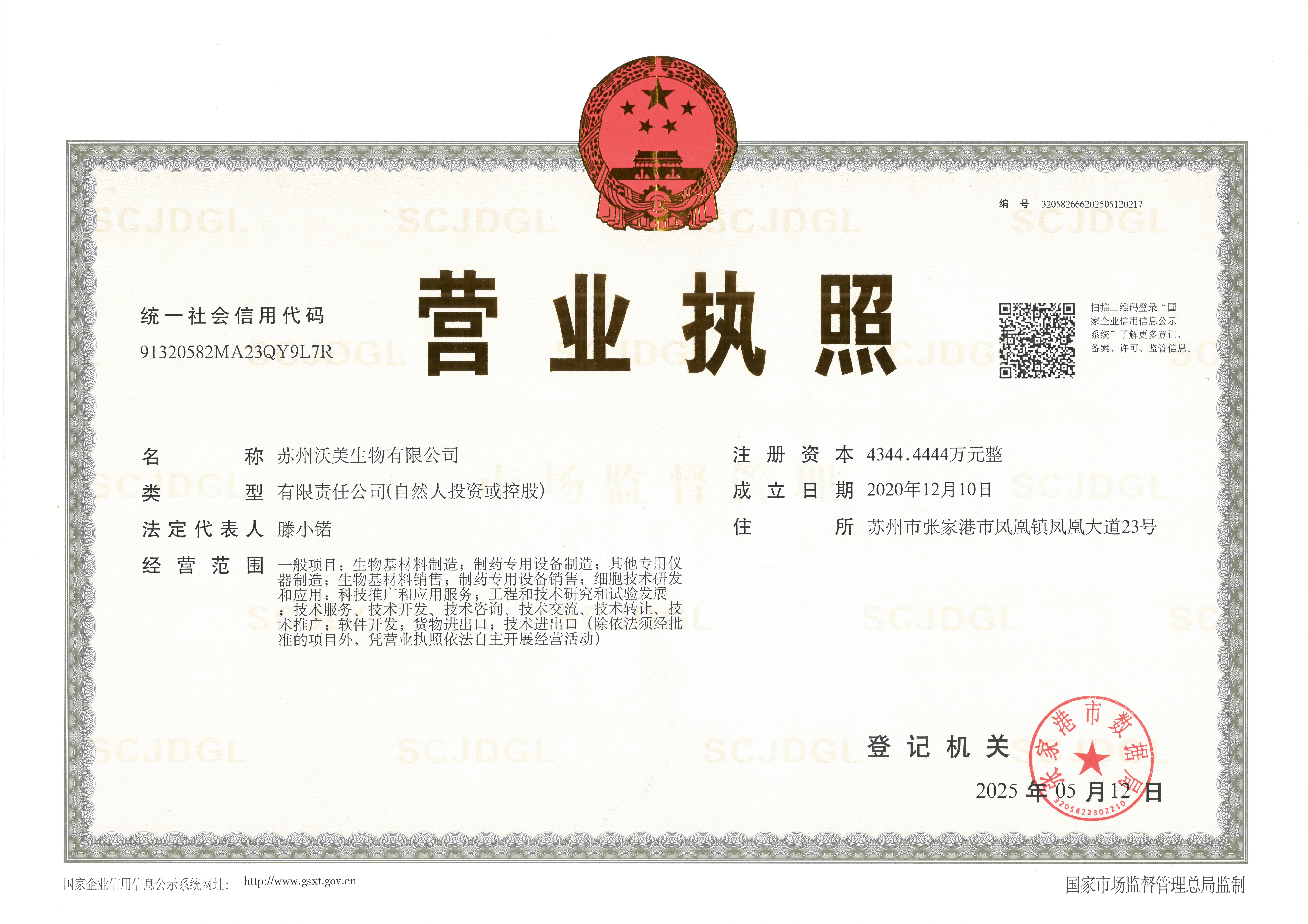 (1)蘇州市沃美生物成立;